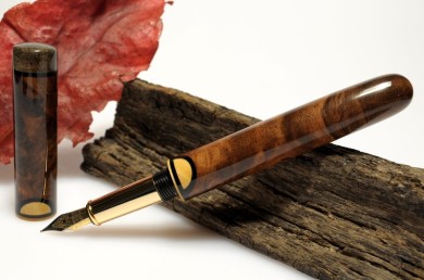 | Gerhard hat mich aus folgenden Hölzern geschaffen. Für meinen Körper hat er ein schönes Stück Nussbaum-Maser aus Südtirol ausgewählt. Die „Banderole“ entsteht aus afrikanischem Ebenholz und aus dem schönen Amarello aus Brasilien. Bei der „Asche“ hat er sich für Buckeye-Wurzel aus Kalifornien entschieden und der „Brandrand“ hinter der Asche, entsteht wiederum aus Ebenholz. | ![]() | |